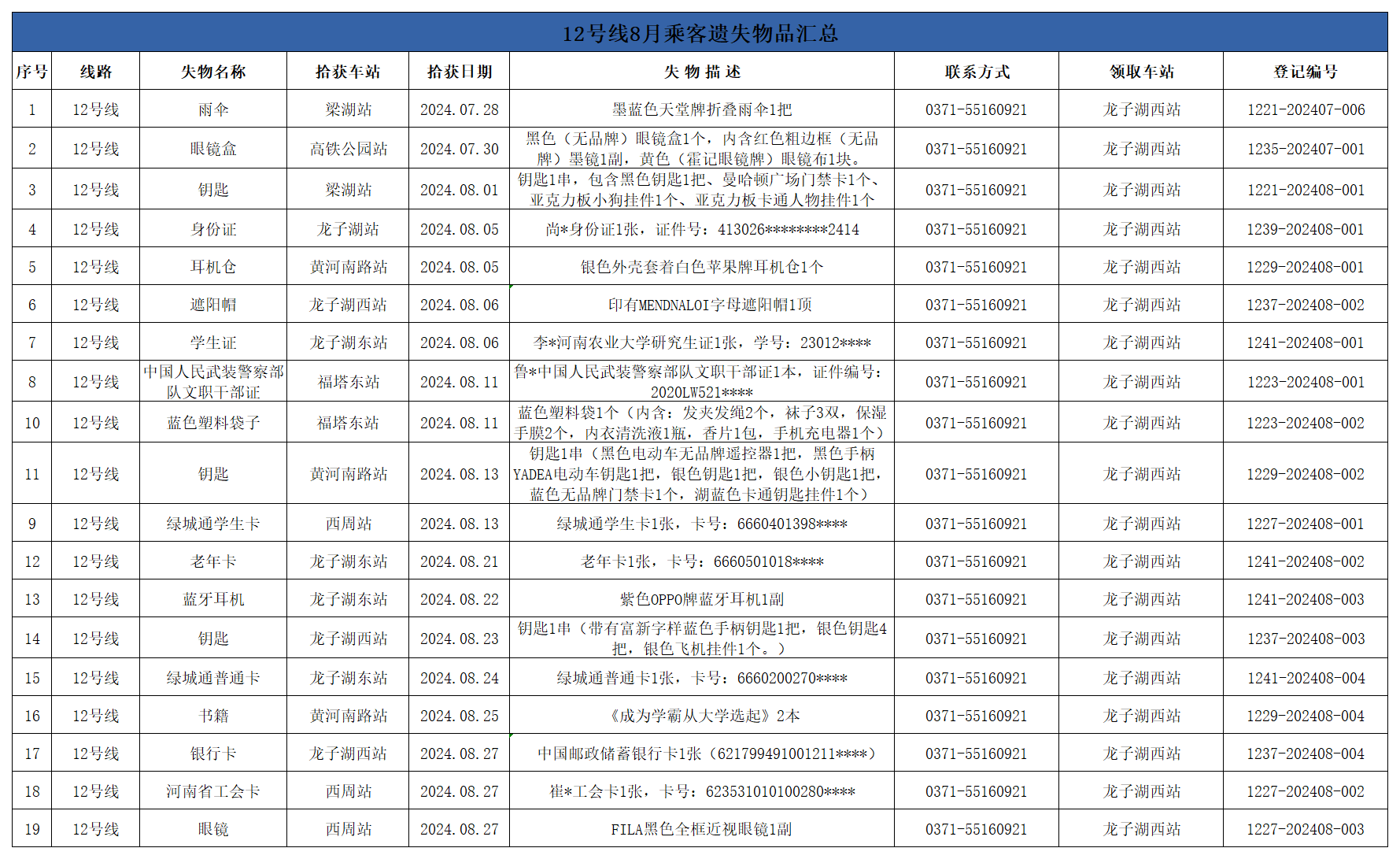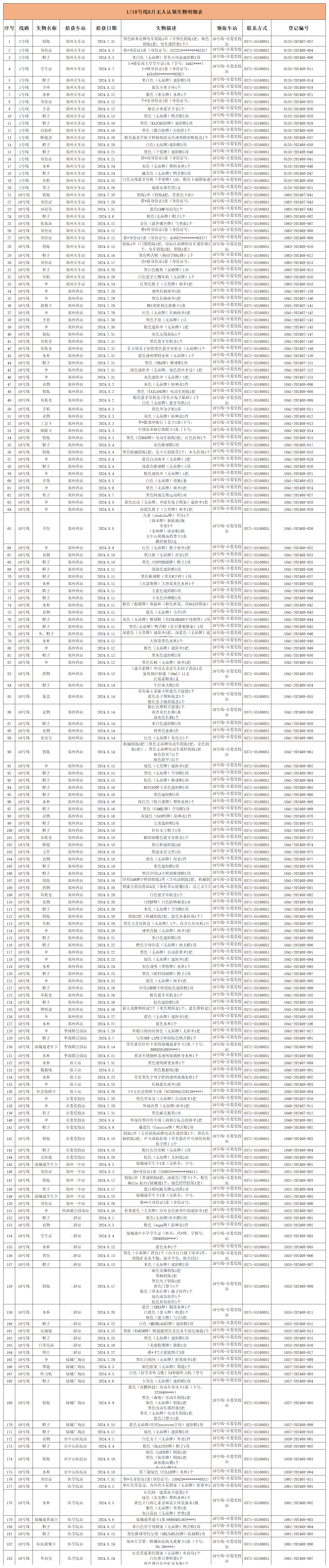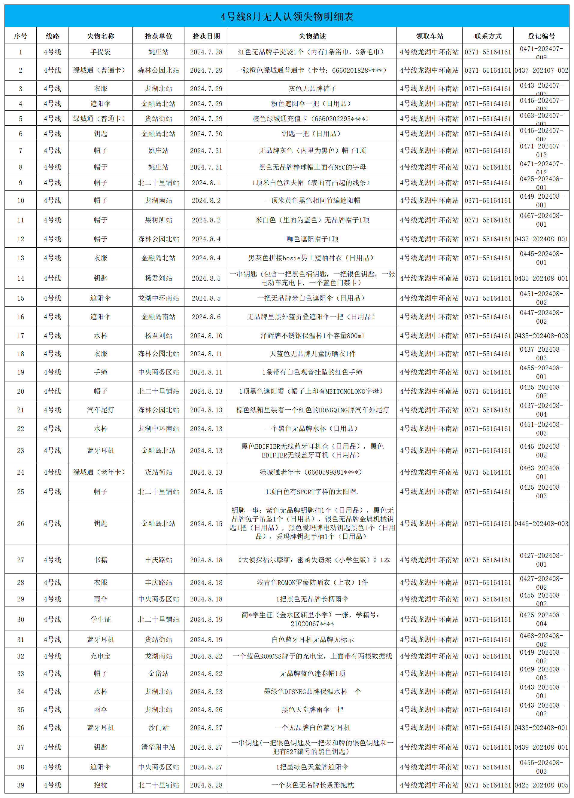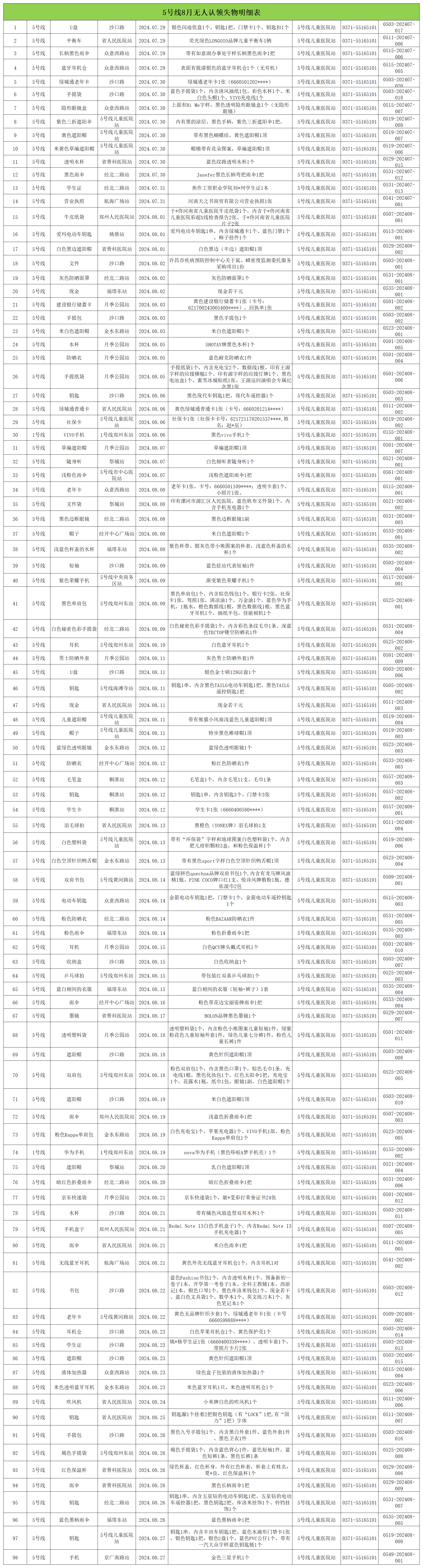 2024年7月28日—2024年8月28日車站無人認(rèn)領(lǐng)失物情況